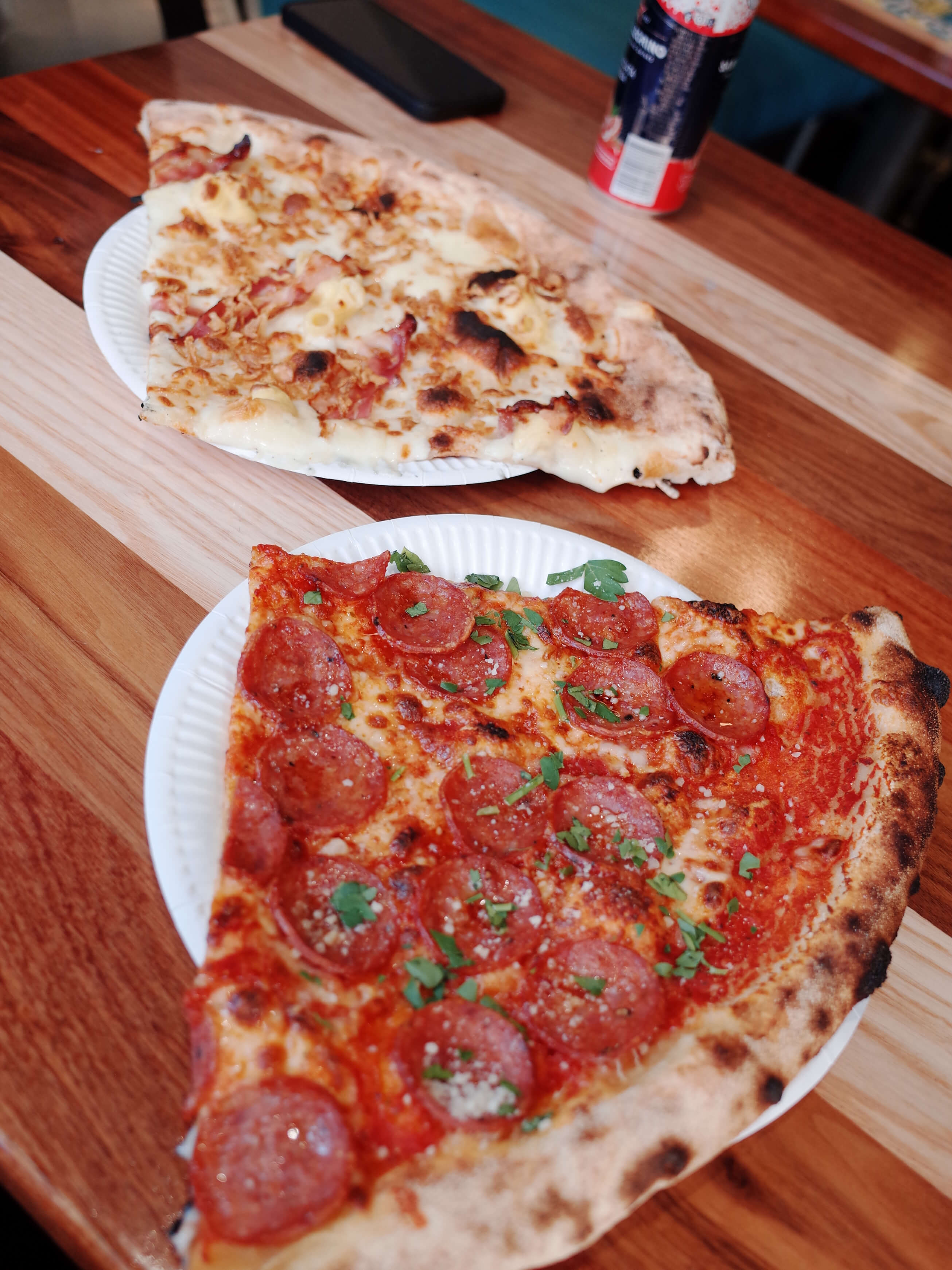 슬슬 출출해진 우리는 그레이프라이어스 커크야드 공동묘지로 향하다 발견했던 피자집을 떠올렸고 그곳으로 갔다. 그곳의 이름은 Civerinos Slice (49 Forrest Rd, Edinburgh EH1 2QP, United Kingdom). 대학가 근처에 있는 캐주얼한 느낌의 피자집이었고 조각으로도 먹을 수 있고 한 판으로도 먹을 수 있었다. 구글 평점도 4.5점이고 후기도 좋아서 방문했는데 점심을 가볍게 때우기에 괜찮았다. 조각이 굉장히 컸지만 두꺼운 피자 스타일이 아니라 담백하면서도 맛있었던 기억으로 남아있다. 개인적으로 인턴생활을 위해 머물던 이스라엘 텔아비브에서 좋아했던 비건 피자집의 도우와 비슷했는데 그때의 맛이 느껴져서 반가웠다.